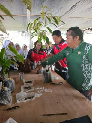 AAO Liew Shan Kueh menunjukkan teknik-teknik cantuman anak pokok durian kepada guru dan pelajar