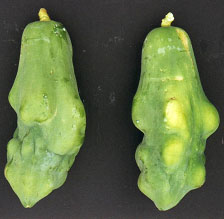 Figure1: Papaya fruit with ringspot virus symptoms |