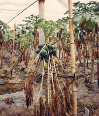 Figure 2: Papaya trees in Taiwan dying from papaya ringspot virus infection |